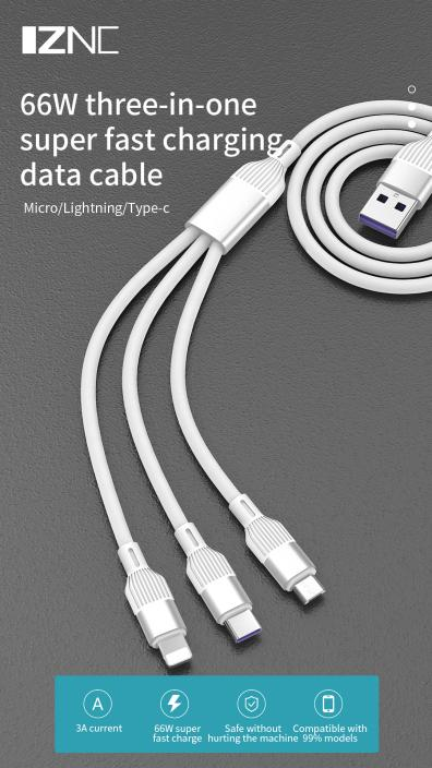 USB-A to 3 in 1 type c / lightning / micro usb fast charging cord